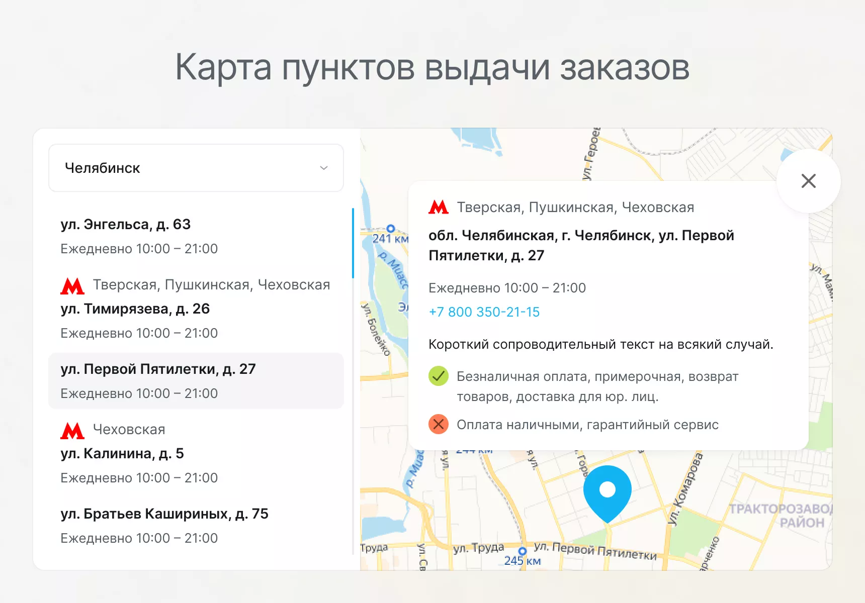 Одностраничный сайт (лендинг пейдж), где можно ознакомиться с товаром в подразделах, положить необходимое количество в корзину, оформить заказ или выполнить онлайн-оплату.Доступно в редакциях «1С-Битрикс: «Старт» и выше
